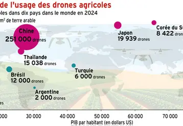 Dans une étude parue dans la revue Science en septembre, des chercheurs américains ont analysé la diffusion des drones agricoles dans dix pays agricoles majeurs, représentant 62% des exploitations agricoles mondiales. Le Japon et la Corée du Sud arrivent en tête en terme de densité de drone…
