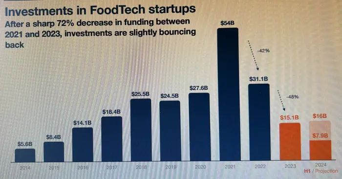 Business AgTech DigitalFoodLab estime à 16 Mrd$ le montant des investissements dans l'Agtech/Foodtech mondial en 2024 Abonné 11 octobre 2024 - 5 min